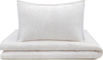 Neutral colors and a hazy pattern lend an air of calmness to this cotton duvet cover perfectly sized for baby's crib.