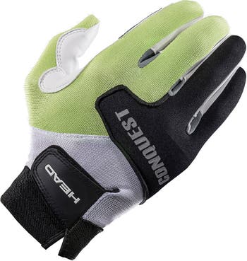 Give your hand protection with the Head Conquest Racquetball Glove. The Conquest is built with a premium Cabretta leather with a tackified Cabretta palm strip that provides outstanding grip. There is a memory foam dive pad which keeps your hand protected and the textured lycra and stretch lycra backing give players the ultimate fit with tons of comfort.