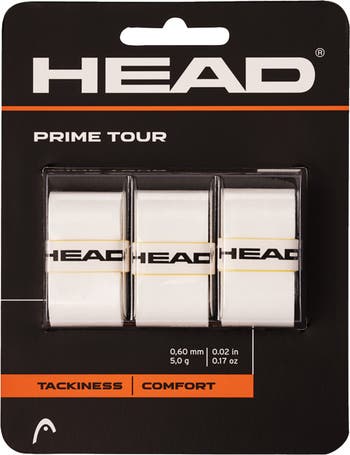 Get improved durability and a tackier finish with the Head Prime Tour Tennis Overgrip. The .6mm size of this overgrip will not alter the grip size of your racquet and is sold in a three pack.