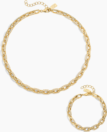 All eyes on you. The Headliner Necklace now has a sparkling sidekick: a matching bracelet. Same sophisticated paperclip chain that’s bedazzled with crystals, for full on glam.