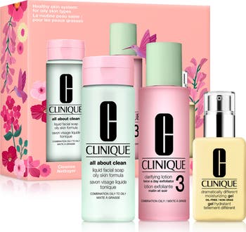 How to use: Use All About Clean Liquid Facial Soap twice a day, morning and night. Lather between palms with lukewarm water. Massage over makeup-free face and neck. Rinse thoroughly; pat skin dry. Use Clarifying Lotion 3 twice a day, morning and night. Apply with a cotton ball, sweeping gently over face and neck. For external use only. Avoid eye area and lips. Spread Dramatically Different Moisturizing Gel all over face/throat twice daily, or where needed.