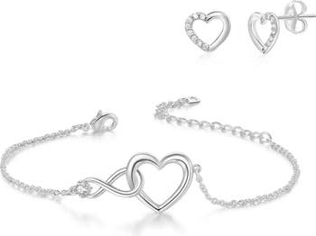 This elegant Heart Bracelet and Earrings Set is the perfect addition to any jewelry collection. Crafted in stunning Sterling Silver, the delicate heart design adds a touch of romance to any outfit. The lead and nickel-free materials make it gentle on skin, while the secure lobster clasp ensures a comfortable fit.