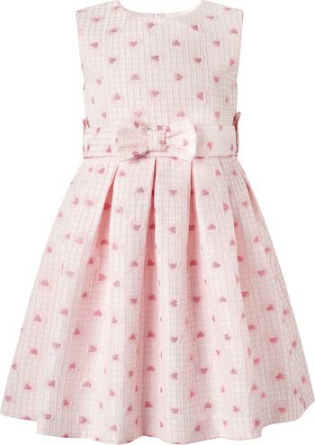 A timeless celebration of sweetness and sophistication, our Heart Check Damask Dress brings Rachel Riley’s signature heritage craftsmanship to life in a beautifully woven Valentine’s Day design. Made from an elegant check-textured damask fabric embroidered with delicate pink hearts, this dress offers a refined look perfect for special occasions, treasured photos, and memorable family outings.