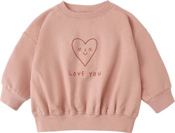 A graphic heart expresses a sweet thought in this relaxed-fit fleece sweatshirt made from stretch-added organic cotton.