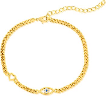 This Blue Sapphire Heart and Eye Bracelet is a stunning piece that features a cut out heart and Created Blue Sapphire. Made with high-quality brass and adorned with Created Blue Sapphire stones, this bracelet is lead and nickel free, making it safe for all skin types. The 7 inch chain with a 2 inch extender and lobster clasp ensures a perfect fit. Create a sense of protection and love with this beautiful bracelet!