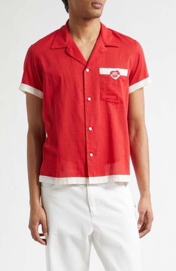 From Bode's tribute to American composer Morris 'Moose' Charlap comes this lightweight cotton-voile camp shirt with heart-shaped embroidery inspired by Lewis Carroll's Queen of Hearts—a tribute to Charlap’s 1966 score for 'Alice Through the Looking Glass.'