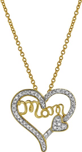 LuvMyJewelry Heart Duo Mom Diamond Pendant Necklace in 10K Yellow Gold, Main, color, 10K Yellow Gold