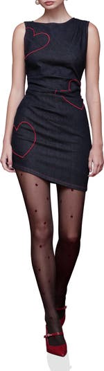 Give a little love in this heart-embroidered minidress made of structured denim that gets shape from smooth darts, soft pleats and an asymmetric hem.