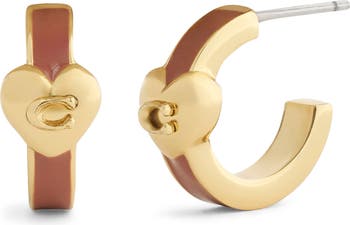 A playful, puffy heart embossed with a sculpted C logo adorns the front of these enamelled huggie hoop earrings that add a pop of color to your lobes.