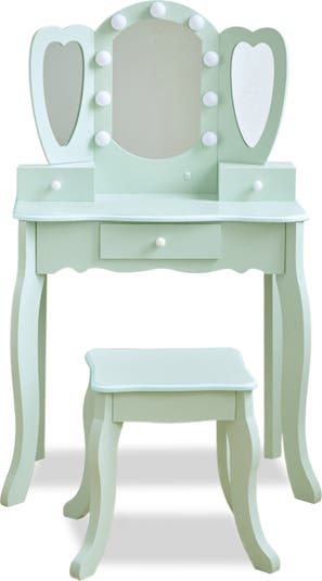Little ones will love getting ready with this vanity that features built-in drawers, a triple mirror, LED lights and a matching stool.