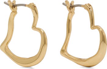 Refresh your collection of hoops with these high-polish huggies reimagined as playfully curved hearts.
