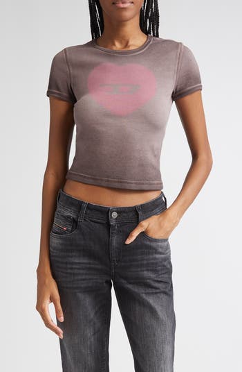 Powered by Y2K nostalgia, the haute-denim brand's superhero-esque logo is scaled to sweet proportions on this shrunken jersey T-shirt that's printed and pigment-dyed while inside out for a watercolor effect with a faded, timeworn patina.