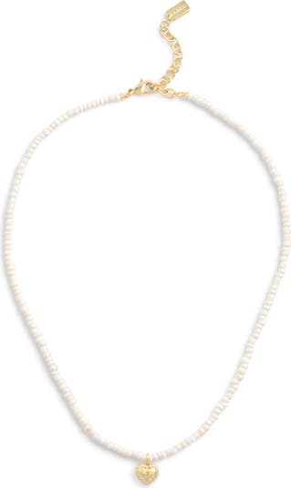 A polished heart pendant makes a dazzling statement on this charming necklace strung with luminous glass pearls.
