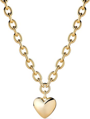 Elevate your everyday style with the modern sophistication of a chain-link necklace plated in 14-karat gold and embellished with a dainty heart pendant.