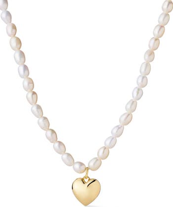 Elevate your everyday style with the modern sophistication of a necklace lined in freshwater pearls and sweetly centered by a 14-karat gold-plated heart.