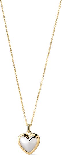 A two-tone heart pendant provides an elegant finishing touch for this dainty chain necklace.