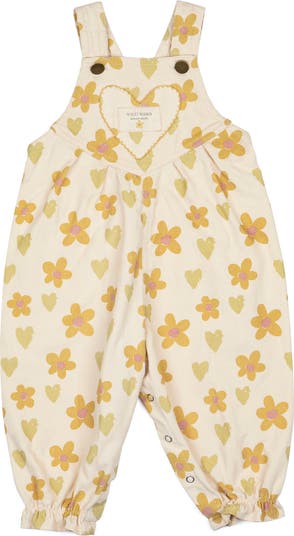 Crafted from 100% cotton corduroy, these overalls feature adjustable button straps, a heart-shaped chest pocket with embroidered Wild Wawa label, and a relaxed silhouette with gathered ankles. Snap closures along the inseam make changes easy. A whimsical layering piece for every season, made in Peru with love.