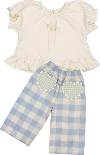 A coordinated set that makes getting dressed feel effortless and sweet. Our Heart Pocket Pant Set features a classic gingham print that feels fresh, timeless, and perfect for every day. The short-sleeve top is adorned with a charming heart-shaped pocket at the chest, adding a playful detail that little ones will love. Paired with matching pull-on pants that feature an elastic waistband for easy, comfortable wear, this set is ideal for playing, exploring, and making memories. Crafted in soft, breathable cotton, both pieces feel gentle on the skin and move easily through busy days. The sweet gingham works beautifully on its own or mixed and matched with other pieces in your little one's wardrobe. Made with care in Peru, this is a set you'll reach for again and again.