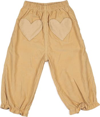 Crafted from 100% cotton corduroy, these pants feature heart-shaped front pockets with delicate embroidery, an elastic waistband and cuffs for comfort, and a relaxed silhouette perfect for play and layering. Made in Peru with love.