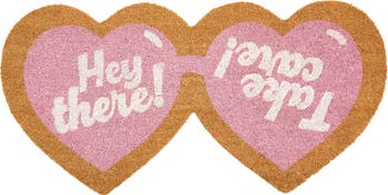 Retro sunglasses and a cheerful greeting welcome guests into your home in the sweetest way. The mDesign Sunni Sunglasses Doormat is adorned with not one but two inviting phrases your visitors will love reading. Designed in the shape of heart sunglasses, guests are greeted with the phrase "Hey There!" as they enter your home, and the words "Take Care!" offer a sweet sendoff as your company heads home. Its fade-resistant dyes keep its vibrancy, making it ideal for the porch, deck, or patio. Suitable for any high-traffic area, the coir material is incredibly functional and is designed to scrape dirt off footwear, keeping your floors clean and dry. The non-slip vinyl backing firmly anchors the mat in place, making it suitable for both indoor and covered outdoor areas while coordinating with your home's aesthetic.