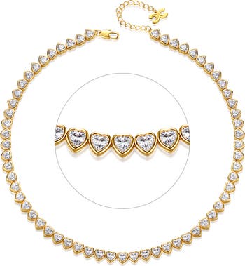 This tennis necklace features a feminine heart-shaped CZ for a shine guaranteed to give a classy statement. It’s handcrafted using top-quality zircons to create a lovely dimension to the piece. This heart-shaped necklace is the quintessential symbol of love and creates a meaningful statement.