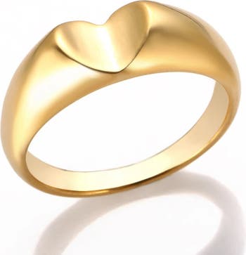 Our Heart Signet Ring offers a new spin on the classic signet ring. The Heart Signet Ring features a gold Indented heart motif that can be stacked or worn alone.