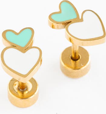 Stack your style with the Heart Stack studs by Lana Effron! These cute layered hearts are a great way to add dimension to your look while showing off some love. Ouch-free and secure screw-back posts. Free from: Nickel, lead and copper. Hypoallergenic and skin safe.
