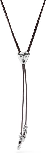 - Leather chain with sterling silver-plated figures. Adjustable heart in the center.