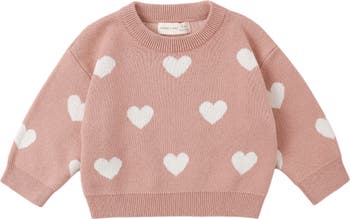 A jacquard of cheery hearts makes each day Valentine's Day in this organic-cotton crewneck sweater.