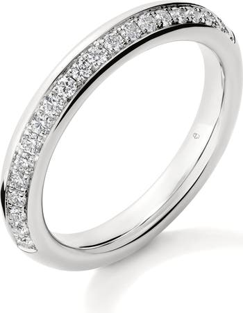 The top half of this high-polish ring is channel-set with pavé diamonds to send light dancing with your every gesture.