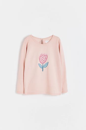 Finest long sleeve pink shirt with a flower embroidery in the front. Crafted from 100% cotton, this shirt is perfect to keep your toddler safe from rashes and allergies.