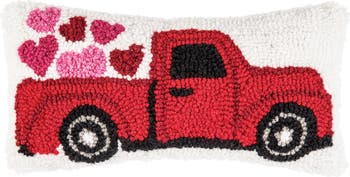 - This petite accent pillow features a charming pickup truck adorned with hearts, celebrating romance and love with handcrafted hooked detailing that adds texture and artisan quality to your Valentine's Day decor throughout February and beyond.