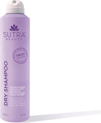 - The SUTRA Heat Guard® Dry Shampoo is a revolutionary, non-drying formula that gives hair a quick refresh and extends your time between washes. Each spritz instantly detoxifies, delivering a refreshed, cleaned, and revitalized feel for your hair and scalp. Enriched with volcanic ash and our Super Power Anti-Aging Complex, excess oils are absorbed, lost moisture is replenished, and hair is protected from environmental stressors.