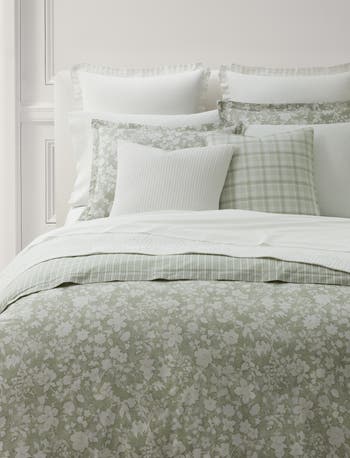 Offering casual, season-spanning style, this cotton percale duvet cover set is defined by stylized floral silhouettes and features a striped reverse for a touch of Ralph Lauren’s signature pattern play.