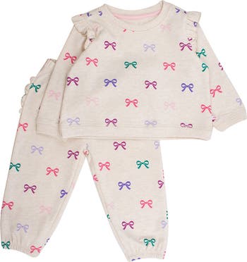 Ruffle details add signature frill to this matching sweatshirt and sweatpants set made from soft cotton for baby's comfort.