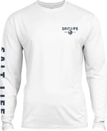 Stay covered and protected from the sun in our Heavy Seas Long Sleeve Tee! Crafted from an ultra-light moisture wicking fabric and treated with UV sun protection to keep you safe from the sun’s harsh rays, this Salt Life performance shirt is perfect for on the water adventures or casual outdoor wear.