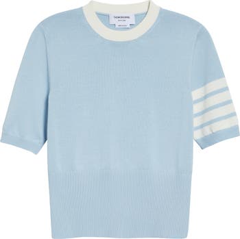 House-signature 4-bar stripes detail the bicep of this short-sleeved cotton sweater designed with an extrawide ribbed hemline.