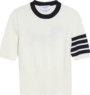 House-signature 4-bar stripes detail the bicep of this short-sleeved cotton sweater designed with an extrawide ribbed hemline.