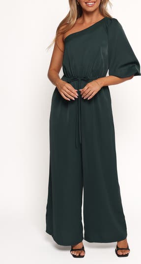 Effortless contemporary-chic style is the name of the game with this wide-leg jumpsuit complete with an asymmetric neckline.