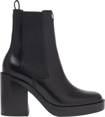 Focus on a collection where every detail counts: smooth leather, an imposing structure, an assertive spirit. These Chelsea boots reinvent the metropolitan icon with a high heel and an ultra-modern, structured platform, creating a powerful and confident look.For a graphic silhouette, pair them with wide-leg jeans and a yellow sweater.
