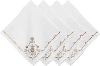Elevate your celebratory table with the alpine flowers rendered in sparking metallic embroidery on these linen-and-cotton napkins you'll reach for all year 'round.