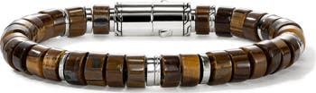 Artisanal tiger's eye beads lend one-of-a-kind color and wabi-sabi character to this handcrafted bracelet highlighted with signature carved sterling silver beads.