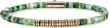 Artisanal beads cut from untreated hardstones lend one-of-a-kind color and wabi-sabi character to this handcrafted bracelet highlighted with 14-karat gold.