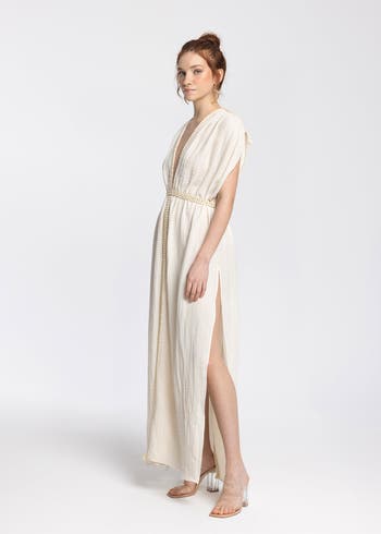 Helen 100% Cotton Maxi Dress: a refined, contemporary piece crafted for effortless elegance, featuring premium 100-cotton-muslin-gauze-fabric