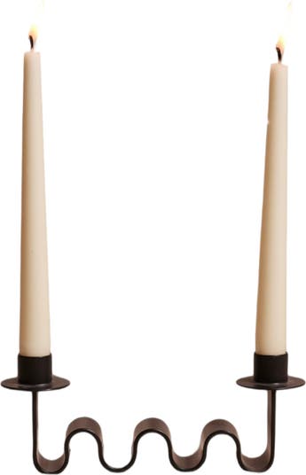 Wavy Black metal candle holder for two taper holders. Handcrafted in India, Fair Trade Certified.