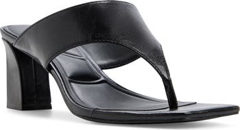 A block heel elevates this thong-strap sandal cushioned with dual-density foam for daylong comfort and style.
