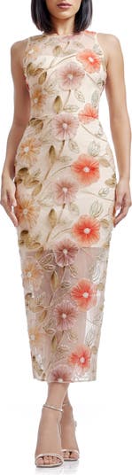 Freshly picked blooms adorn a sparkling sheath gown that will get glasses raised in tribute.