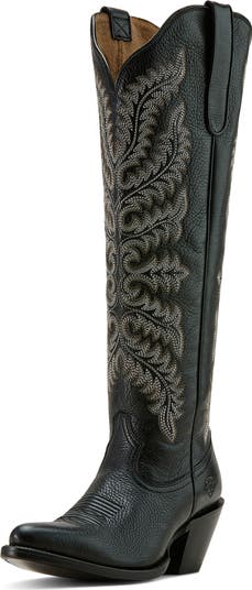 Intricate contrast topstitching brings elegant detail to this tall leather cowboy boot balanced on a sturdy heel and supported by ATS® technology for adaptable comfort.