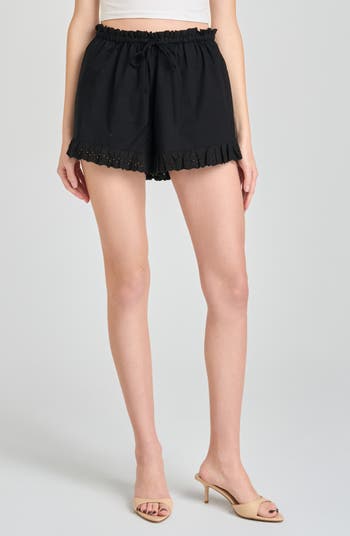 Helena Eyelet Ruffle Stretch Cotton Shorts
