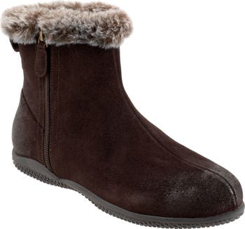 Plus faux fur warms the look and feel of this suede bootie designed with an arch-supporting cushioned footbed for comfort.